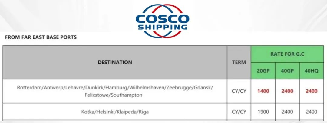 中远海运也宣布自12月15日起,上调远东至北欧费率。具体详情如下: